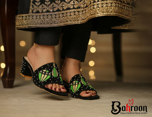 Handcraft Material : Pearl, stone, dapka, suta, jori. Material: The shoes are crafted from high-quality PU, providing a luxurious look and feel while ensuring durability. Inner Material: The interior features a combination of rubber and leather board, iron sheet and latex offering exceptional comfort and support for all-day wear. Sole: Designed with a high-grade rubber sole.