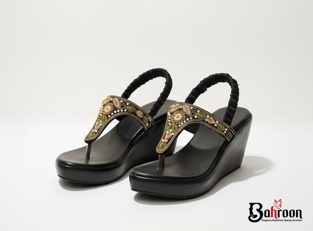 The stunning embellishments and intricate beadwork add a touch of elegance, making these wedges perfect for festive occasions, casual outings, or even everyday wear. Experience the perfect blend of traditional craftsmanship and modern design with these beautiful handcrafted wedges.