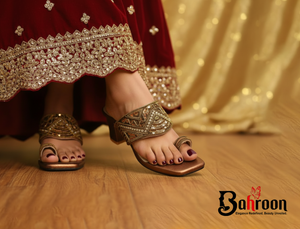 Handcraft Material : Jarkan chumki, puti,volume, tyre, jori. Material: The shoes are crafted from high-quality PU, providing a luxurious look and feel while ensuring durability. Inner Material: The interior features a combination of rubber and leather board, iron sheet and latex offering exceptional comfort and support for all-day wear. Sole: Designed with a high-grade rubber sole.