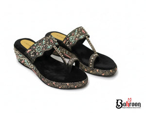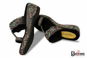 Handcrafted Material : Crystal, chumki, puti, suta, jori. Material: The shoes are crafted from high-quality PU, providing a luxurious look and feel while ensuring durability. Inner Material: The interior features a combination of rubber and leather board, iron sheet and latex offering exceptional comfort and support for all-day wear. Sole: Designed with a high-grade rubber sole.
