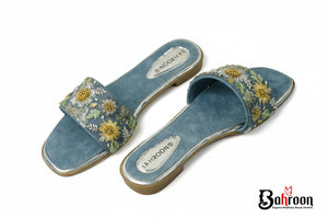 Crafted by our in-house designers, each pair guarantees a distinctive and impeccable finish. These charming pastel slip-on slides feature an exquisite and delightful detailing with bold, vibrant floral embroidery over the strap.