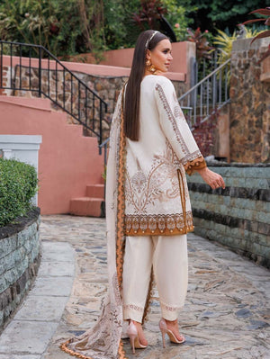 It’s a traditional Pakistani design with a loose fit, ensuring comfort and ease of movement. Made from lightweight fabric, it is suitable for warm weather. The elegant embroidery adds style without sacrificing practicality. Overall, this outfit combines comfort with sophistication, making it ideal for various occasions.