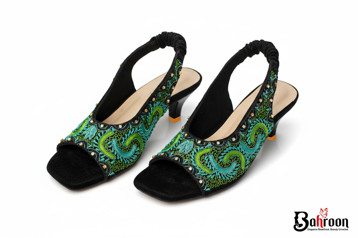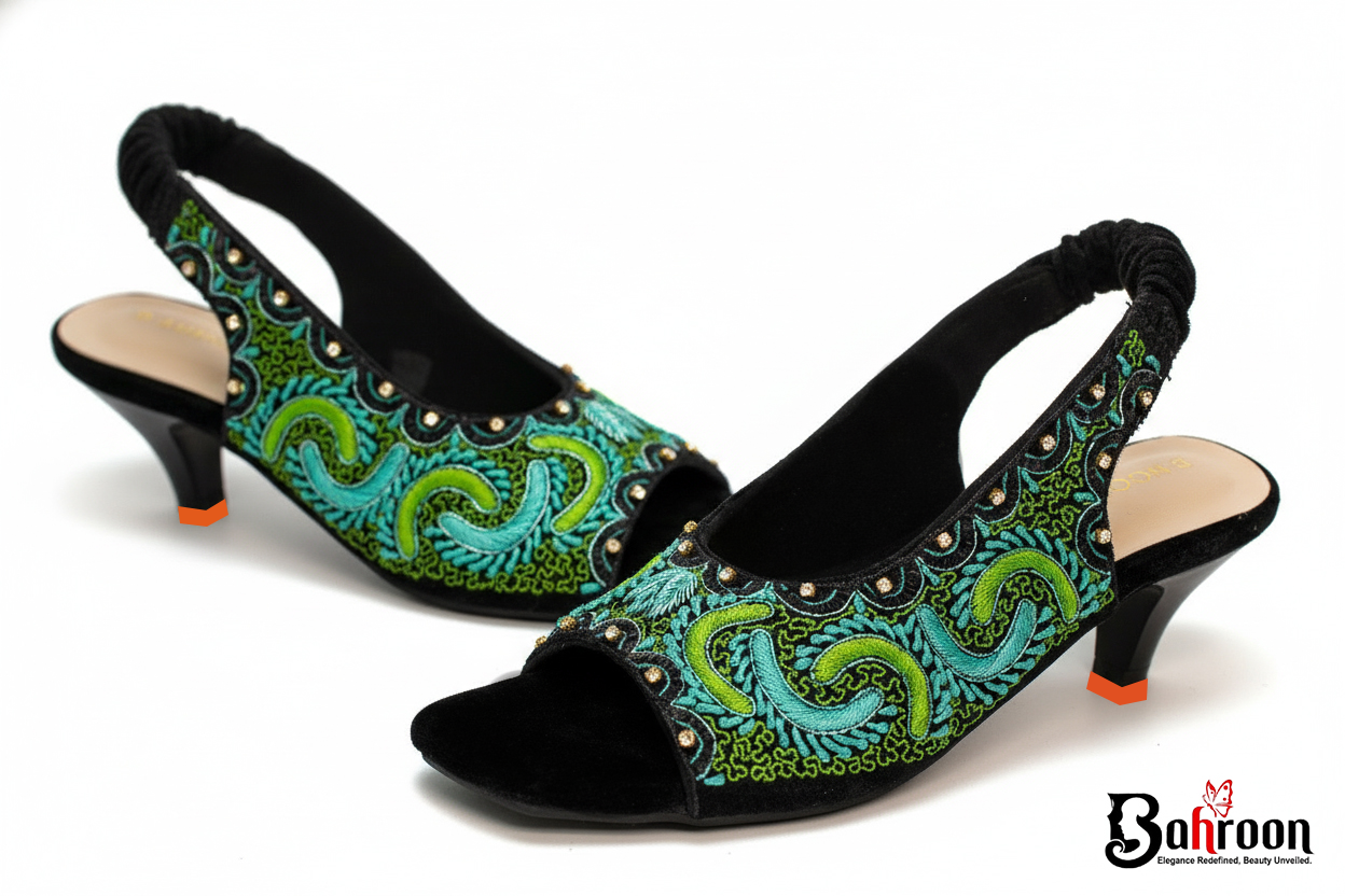 Handcrafted Material : Suta, dapka, stone, chumki. Material: The shoes are crafted from high-quality PU, providing a luxurious look and feel while ensuring durability. Inner Material: The interior features a combination of rubber and leather board, iron sheet and latex offering exceptional comfort and support for all-day wear. Sole: Designed with a high-grade rubber sole, these pumps provide excellent traction and longevity, making them perfect for both formal events and everyday wear.