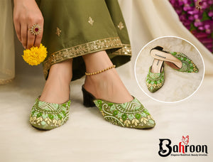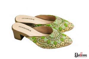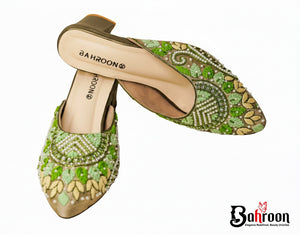 Handcraft Material : Suta, pearl, volume, glass, jori . Material: The shoes are crafted from high-quality PU, providing a luxurious look and feel while ensuring durability. Inner Material: The interior features a combination of rubber and leather board, iron sheet and latex offering exceptional comfort and support for all-day wear. Sole: Designed with a high-grade rubber sole.
