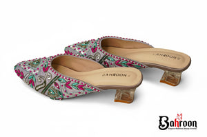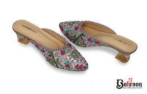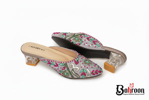 Handcrafted Materials: Volume ,jarkan, pearl, suta, chumki, dapka, jori. Material: Made from high-quality PU ย these pumps exude a luxurious finish while providing durability and a refined look. Inner Material: The interior features a combination of rubber and leather board, iron sheet & latex ensuring a soft and comfortable fit that supports your feet throughout the day. Sole: Equipped with a high-grade rubber sole, these pumps offer excellent traction and longevity, making them ideal for extended wear.