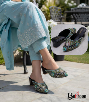 Step into elegance with our Premium Handcrafted Karchupi Half Pump Heels, designed to make a statement. These heels combine exquisite craftsmanship with vibrant floral designs, perfect for any occasion. These handcrafted heels are not only a fashion statement but also a celebration of traditional artistry. Elevate your footwear collection with this exquisite pair and step out in style.