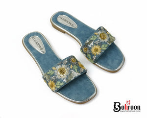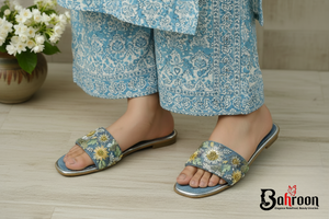 Crafted by our in-house designers, each pair guarantees a distinctive and impeccable finish. These charming pastel slip-on slides feature an exquisite and delightful detailing with bold, vibrant floral embroidery over the strap.